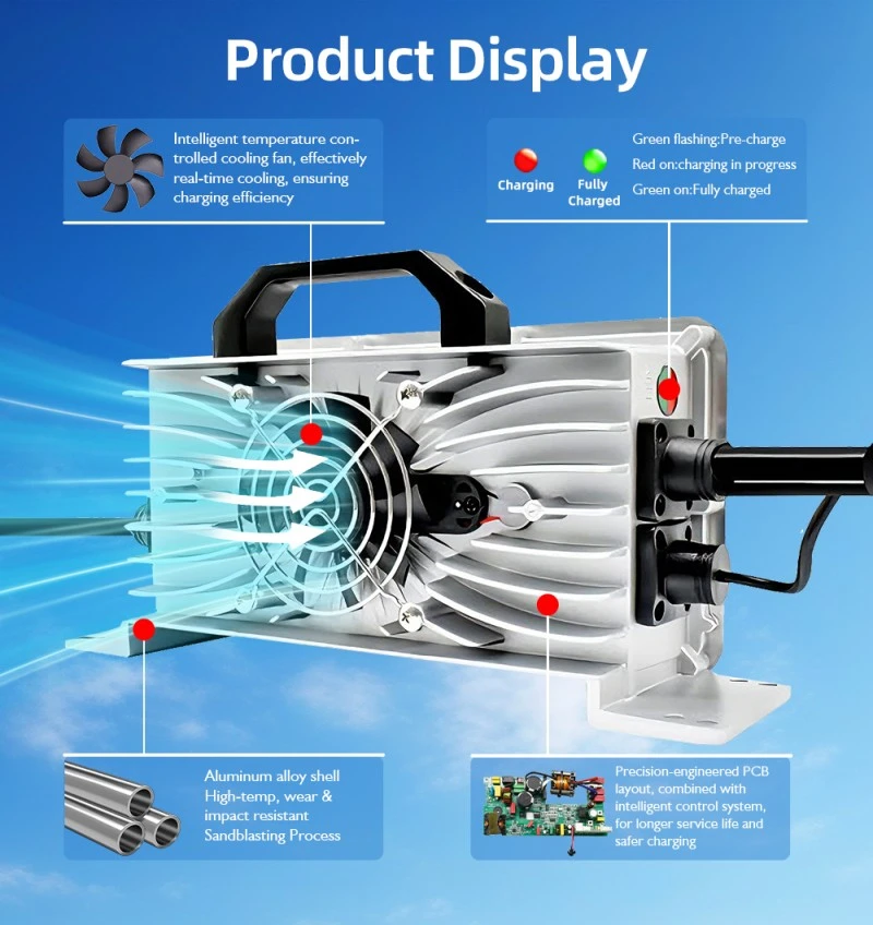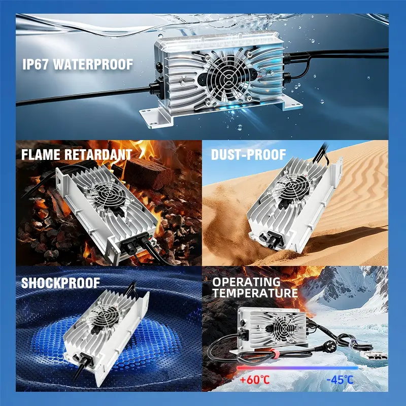 Sesuai untuk kenderaan elektrik, forklift, kereta golf dan sistem marin, pengecas atas kapal STARWELL ini menggabungkan kepelbagaian, kelajuan dan keselamatan—penyelesaian kuasa dipercayai anda untuk keperluan bateri semasa bergerak.