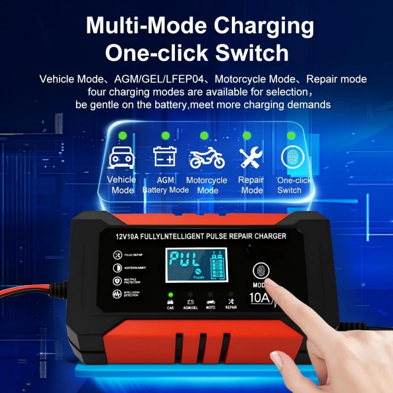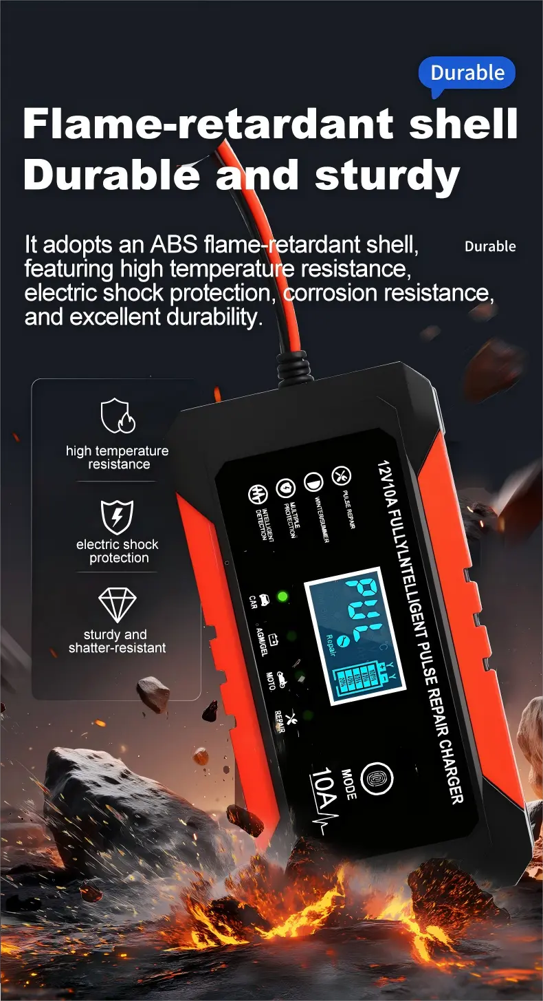 2. Keselamatan Pintar & Perlindungan Bateri: Perlindungan terbina dalam terhadap pengecasan berlebihan, litar pintas, kekutuban songsang dan terlalu panas memastikan keselamatan yang lengkap. Ia menggunakan proses pengecasan pintar 4 langkah (pracas, arus malar, voltan malar, apungan) dan secara automatik memotong kuasa apabila bateri dicas sepenuhnya, memanjangkan jangka hayat bateri sehingga 30% berbanding pengecas tradisional.