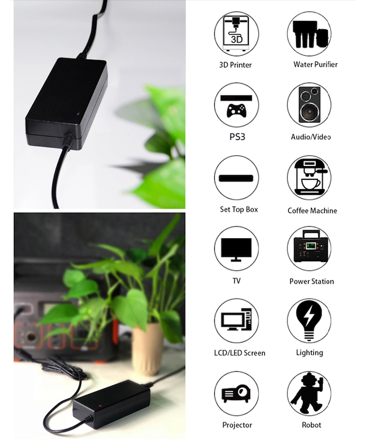 * Lebih banyak unit untuk siri 120W: 12V/15V/20V/24V/36V/48V tersedia * Keselamatan: OCP/OVP/OTP, SCP, pemotongan beban lampau automatik, pemotongan voltan lebih, pemotongan terma automatik. * Keserasian luas: Lampu Jalur LED, Pencetak 3D, transceiver radio ham, kamera CCTV, amp subwufer kereta, penguat audio, penghala wayarles, Kucing ADSL, Pelembap, HUB, Papan Kekunci, Pembesar Suara BT, Monitor, Kamera Web, DVR, NVR, bekalan kuasa audio/video