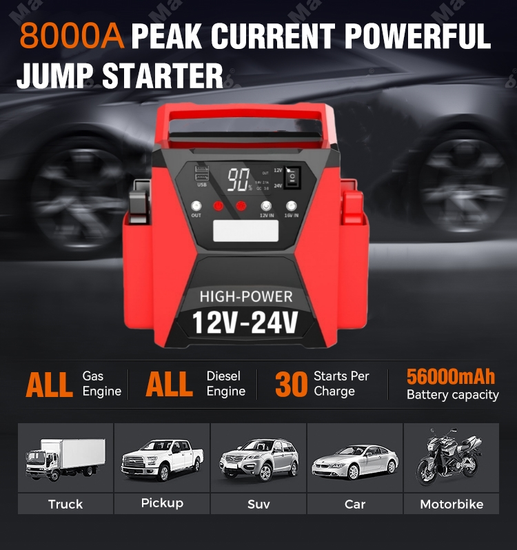 STARWELL memperkenalkan Pengecas Bateri Pintar Pemula Lompat Kereta 12V/24V berprestasi tinggi, pengubah permainan untuk pemilik kenderaan yang mencari kebolehpercayaan dan kecerdasan dalam penyelenggaraan bateri dan permulaan kecemasan. Dilengkapi dengan arus puncak 8000A dan arus mula 4000A, pengecas bateri pintar dwi-voltan ini menggabungkan kuasa teguh dengan teknologi pintar, menjadikannya sesuai untuk semua enjin gas dan enjin diesel sehingga 15L, meliputi kereta, trak, RV, motosikal, bot, dan juga kenderaan komersial tugas berat.