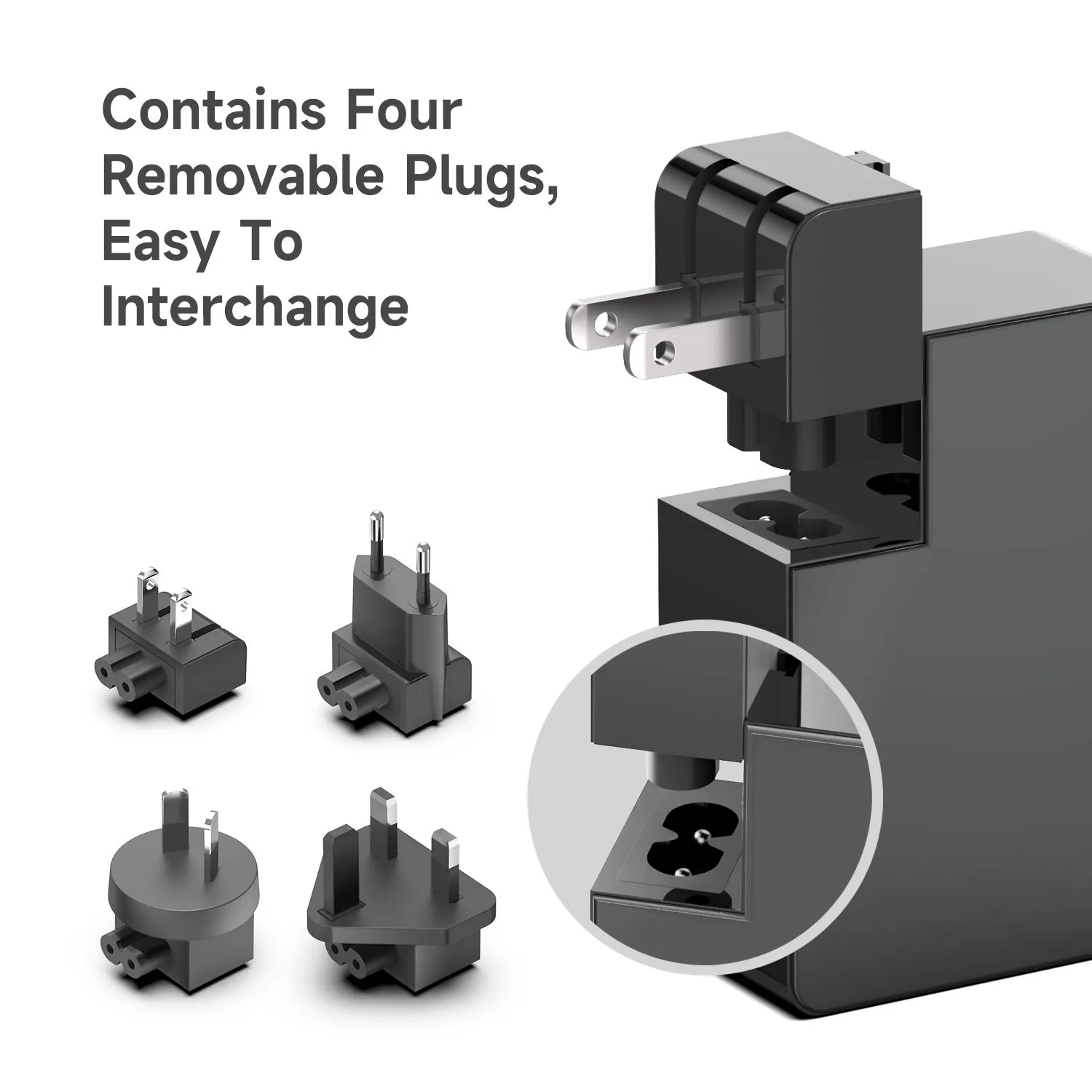 Palam berbilang standard: Penyesuai kuasa STARWELL dilengkapi dengan 4 jenis palam snap masuk (AS, EU, UK dan AU), tidak memerlukan penukar tambahan untuk perjalanan merentas sempadan.