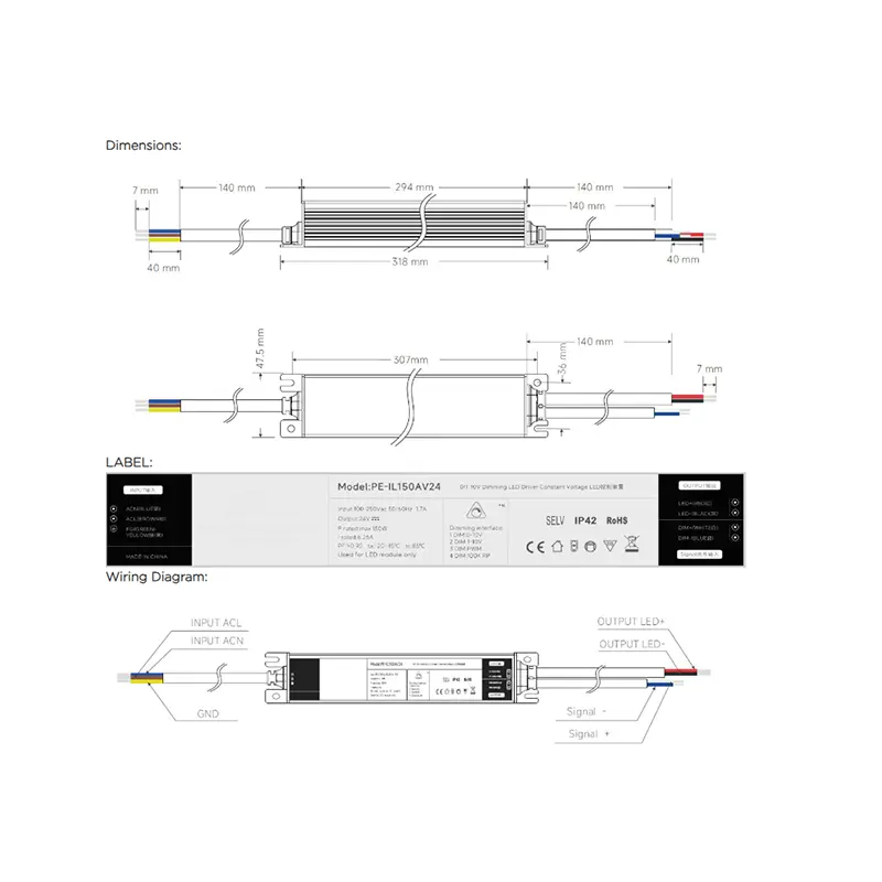 Dilengkapi dengan antara muka pemalapan standard 0-10V, ia menyokong pelarasan kecerahan lancar daripada 1% hingga 100%, serasi dengan kebanyakan dimmer terkemuka di pasaran. Mempunyai kecekapan tenaga yang tinggi sehingga 95% dan julat input AC yang luas 100-277V, ia menyesuaikan dengan mudah kepada piawaian voltan global, sesuai untuk projek antarabangsa.