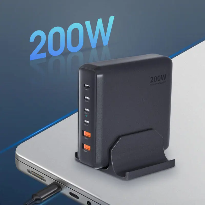 GAN 200W Fast Charger 4 USB-C + 2 USB-A 200W PD Charger