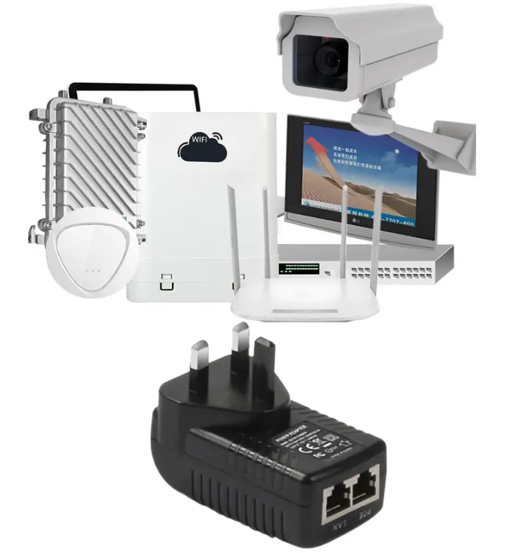 Penyesuai Dinding POE 24V 1A ini menyokong kedua-dua output 24V 1A dan 48V 0.5A, memadankan pelbagai peranti POE 24V dan 48V. Reka bentuk penyuntik POE dwi port membolehkan kuasa dua peranti pada masa yang sama, meningkatkan fleksibiliti dan kecekapan pemasangan.