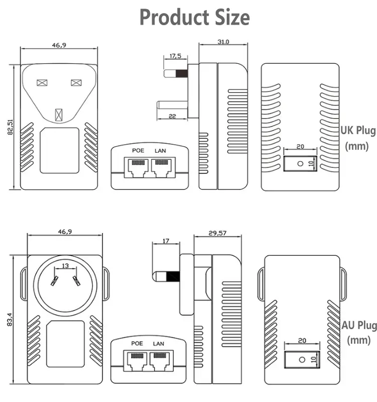 Struktur palam dinding padat membolehkan penggunaan terus dengan soket kuasa standard, tidak memerlukan pendakap atau pendawaian tambahan. Penyuntik POE 24V 1A 48V 0.5A ini menjimatkan ruang dan memudahkan pemasangan kabel, menjadikannya pilihan ideal untuk sistem pengawasan rumah, pejabat, kedai dan kecil.