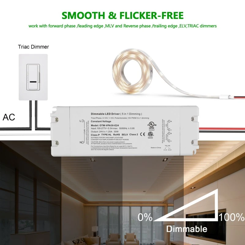 3. Kecekapan Tinggi & Penjimatan Tenaga: Pemandu Led Triac Dimming 30W 24V berkualiti tinggi STARWELL mempunyai kecekapan penukaran sehingga 88% dan penggunaan kuasa yang rendah dengan kuasa tanpa beban ≤ 0.5W, yang membantu mengurangkan kos tenaga jangka panjang.