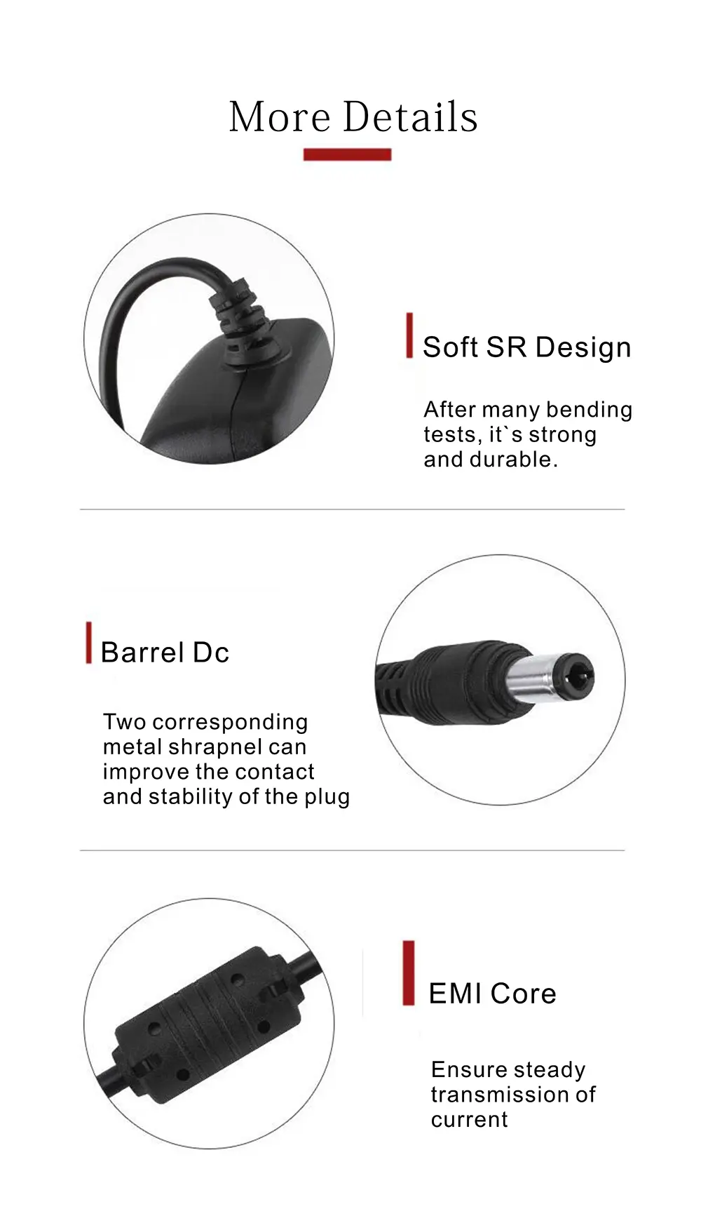 2. Cabutan Kuasa: Watt peranti anda hendaklah kurang daripada 72W. Penyesuai 3A boleh kuasa peranti yang melukis 3A atau kurang pada 24V.