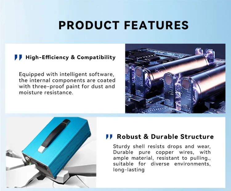 Pengecas bateri berkuasa tinggi 29.4V/45A ini ialah penyelesaian pengecasan profesional yang disesuaikan untuk pek bateri litium 24V, memberikan output 29.4V yang stabil dan arus tinggi 45A untuk menyokong pengecasan yang pantas dan cekap. Mengguna pakai teknologi pensuisan frekuensi tinggi termaju dengan PFC aktif, ia berfungsi dengan input global 100–240V, menampilkan kecekapan penukaran tenaga yang tinggi dan penggunaan kuasa yang rendah, serta memenuhi permintaan penggunaan industri dan komersial.