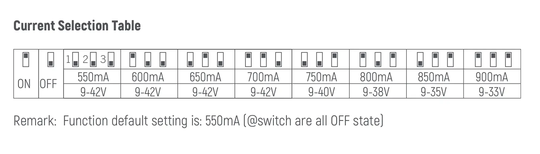 Saluran tunggal untuk 180mA/240mA/300mA |