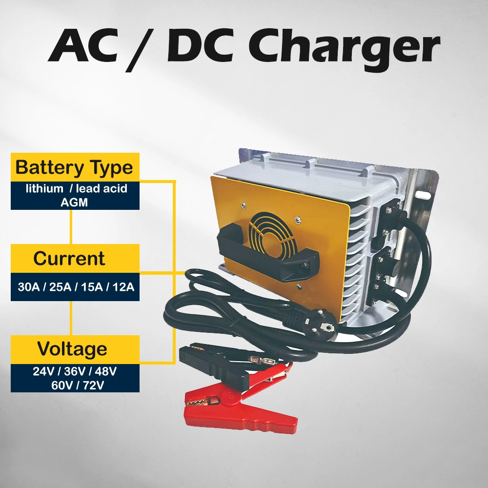 Dengan perlindungan terbina dalam terhadap voltan lampau, arus lebihan, litar pintas, kekutuban songsang, lebih suhu dan voltan terkurang bateri, pengecas memastikan operasi yang selamat dalam semua keadaan. Reka bentuk yang dimeterai dan bebas penyelenggaraan mengurangkan masa henti dan mengurangkan jumlah kos pemilikan, menjadikannya pilihan yang boleh dipercayai untuk pengendali armada dan pengeluar peralatan.