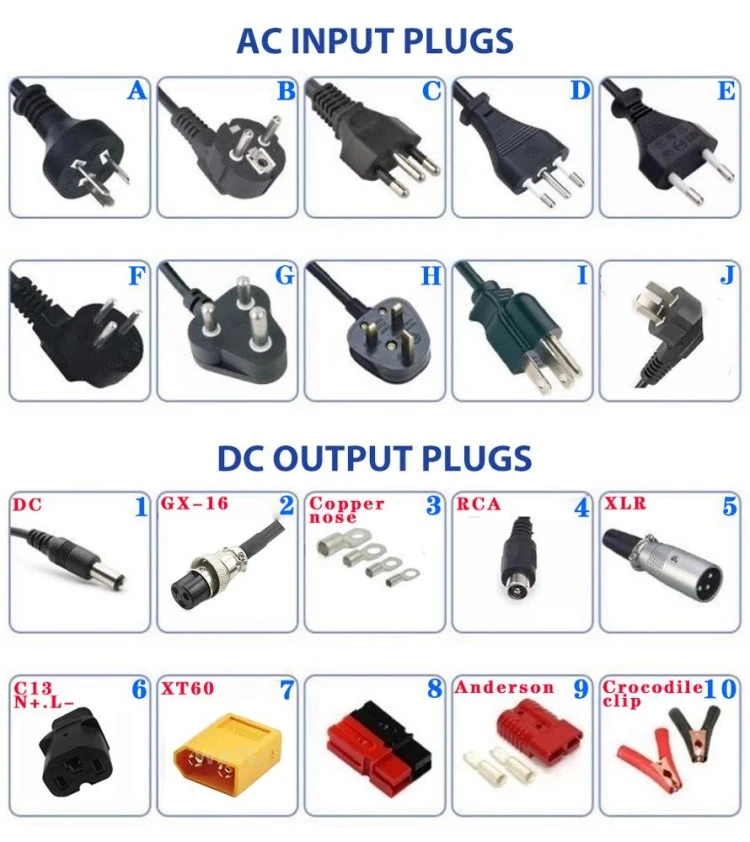 · Menyokong asid plumbum (banjir, AGM, gel), litium-ion (LiFePO₄), bateri Ni-MH dan Ni-Cd