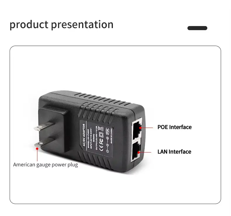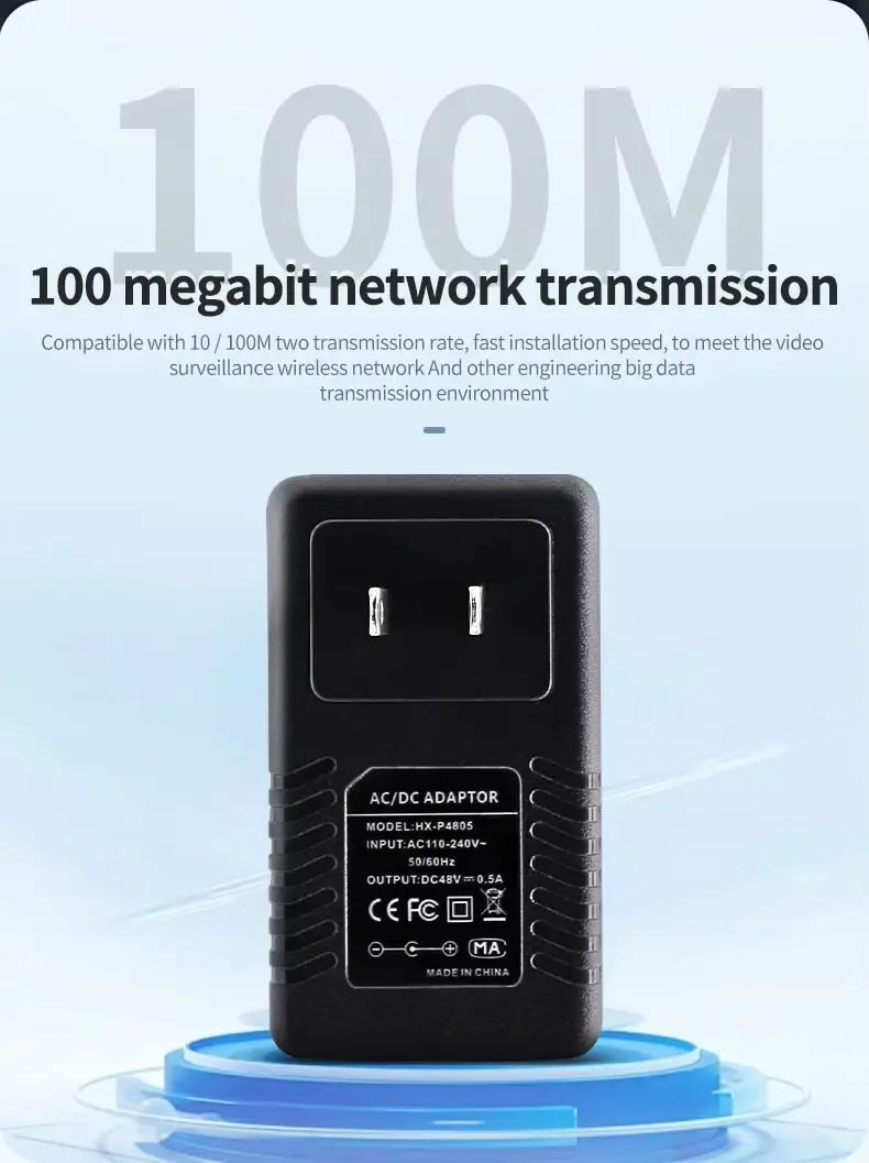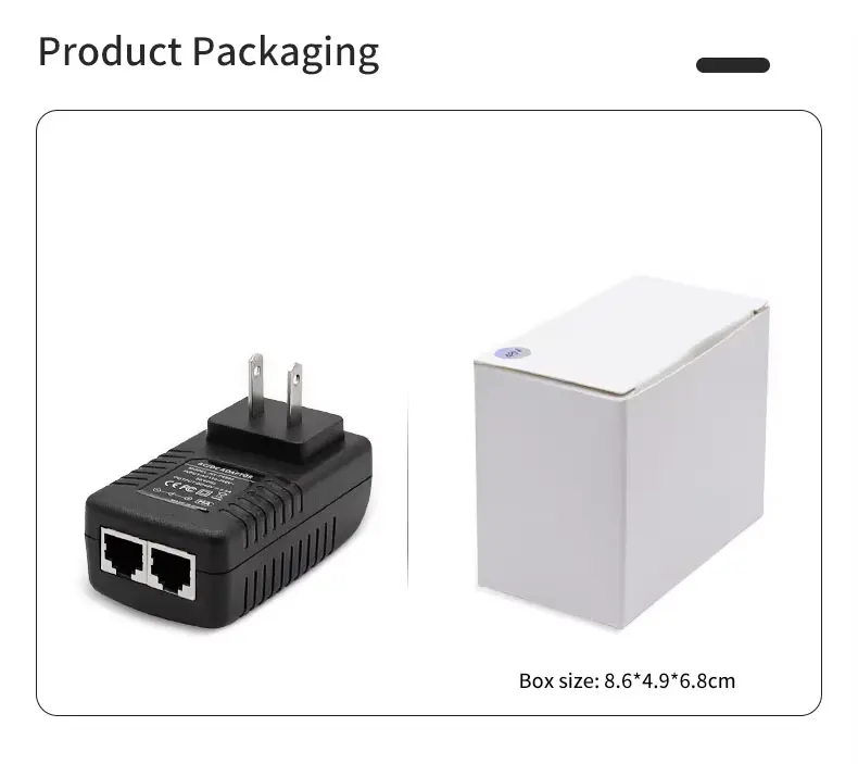 Penyesuai Ethernet Penyuntik PoE Palam Dinding 48V 0.5A berkualiti tinggi ditawarkan oleh pengeluar China Starwell. Unit bekalan kuasa ini memberikan kuasa output 24W (48V/0.5A), menjadikannya amat sesuai untuk peranti wayarles luar—seperti yang daripada jenama seperti Ubiquiti dan MikroTik—serta kamera IP jarak jauh dan jambatan rangkaian. Produk ini mempunyai pelbagai mekanisme perlindungan terhadap voltan lampau, arus lebihan dan litar pintas; ia beroperasi dalam julat suhu -10°C hingga 60°C dan disertakan dengan waranti selama 5 tahun.