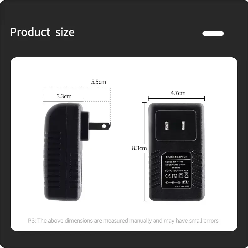 Output: 48V DC 500mA - Sila jangan pesan jika unit anda memerlukan lebih daripada 500 MilliAmps