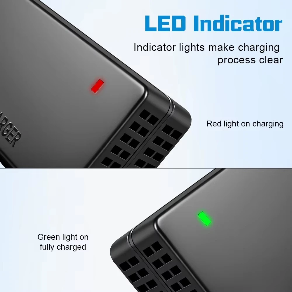 Walaupun prestasinya teguh, pengecas ini menampilkan reka bentuk yang padat dan ringan yang menjadikannya mudah dibawa. Sama ada anda memerlukan pengecas untuk rumah, pejabat atau untuk menyimpan dalam beg galas anda untuk tambah nilai semasa dalam perjalanan, kemudahalihannya memastikan anda sentiasa mempunyai akses kepada kuasa yang selamat dan boleh dipercayai. Tahan lama dan mesra pengguna, pengecas 48V ini adalah pasangan kuasa yang ideal untuk mengekalkan kesihatan dan prestasi bateri litium-ion anda.