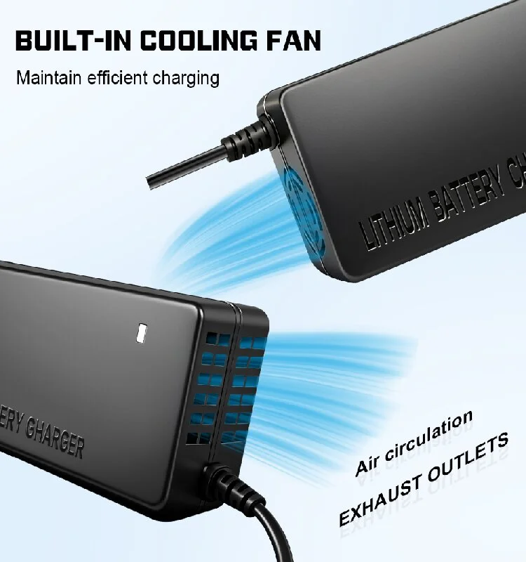 Dilengkapi dengan cip pengurusan mikrokomputer terbina dalam, pengecas memantau voltan bateri dan turun naik suhu dalam masa nyata. Ia beroperasi bersama Sistem Pengurusan Bateri (BMS) untuk memastikan proses pengecasan kekal selamat dan terkawal, dengan itu memenuhi sepenuhnya keperluan ketat pek bateri litium-ion.