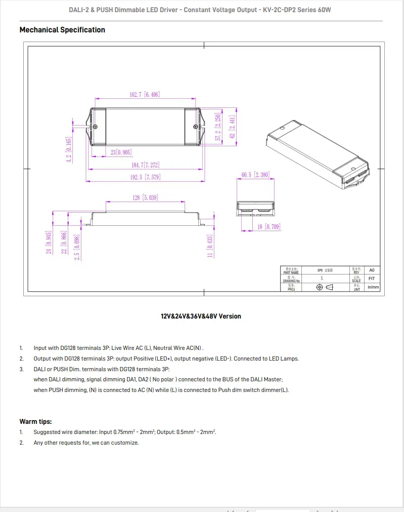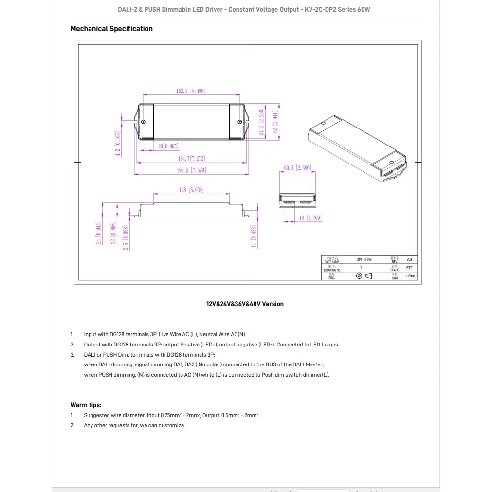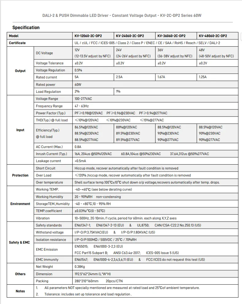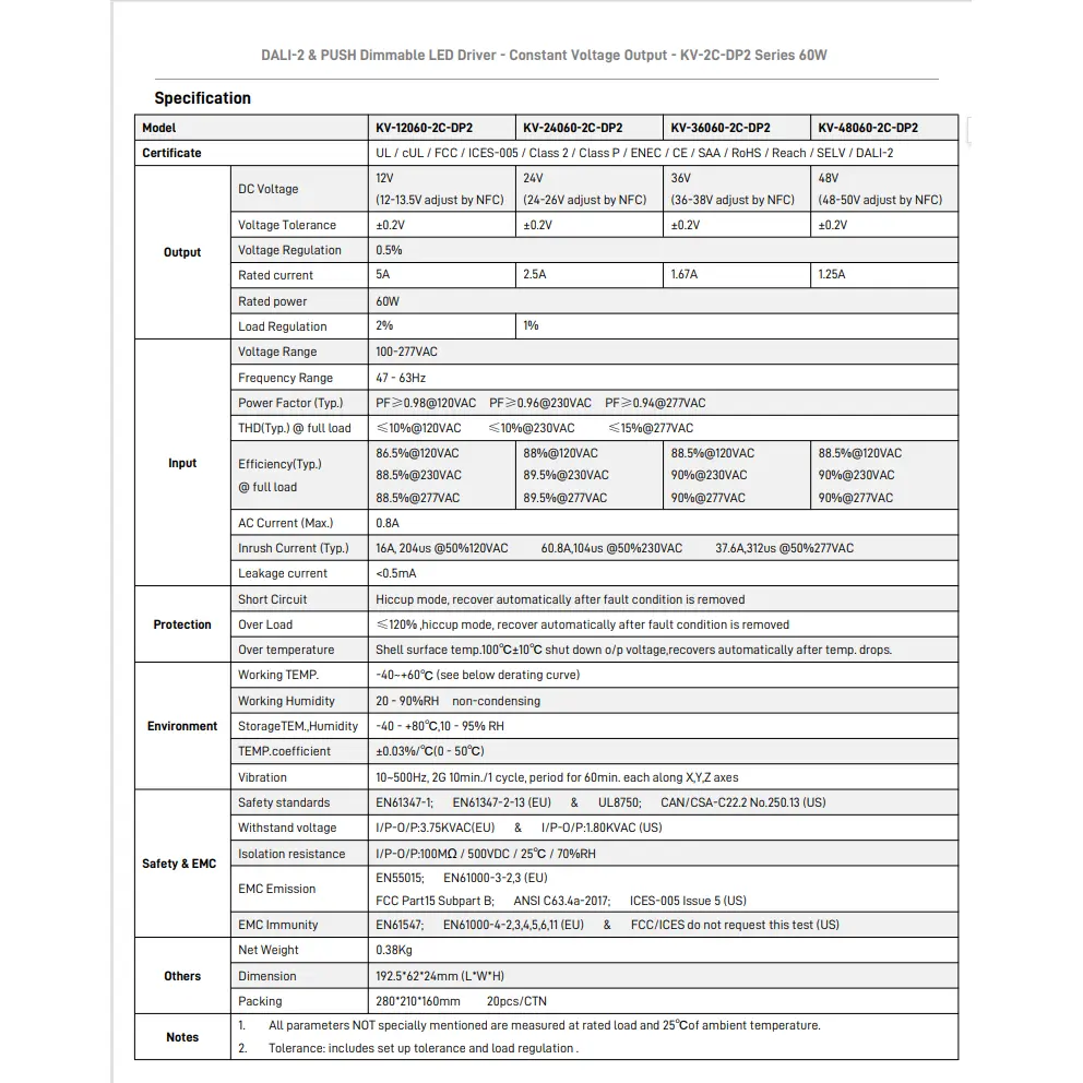 Fungsi peredupan: DALI-2 & PUSH 2 dalam 1 dimming (CCT). Kekerapan keluaran PWM 4KHz.