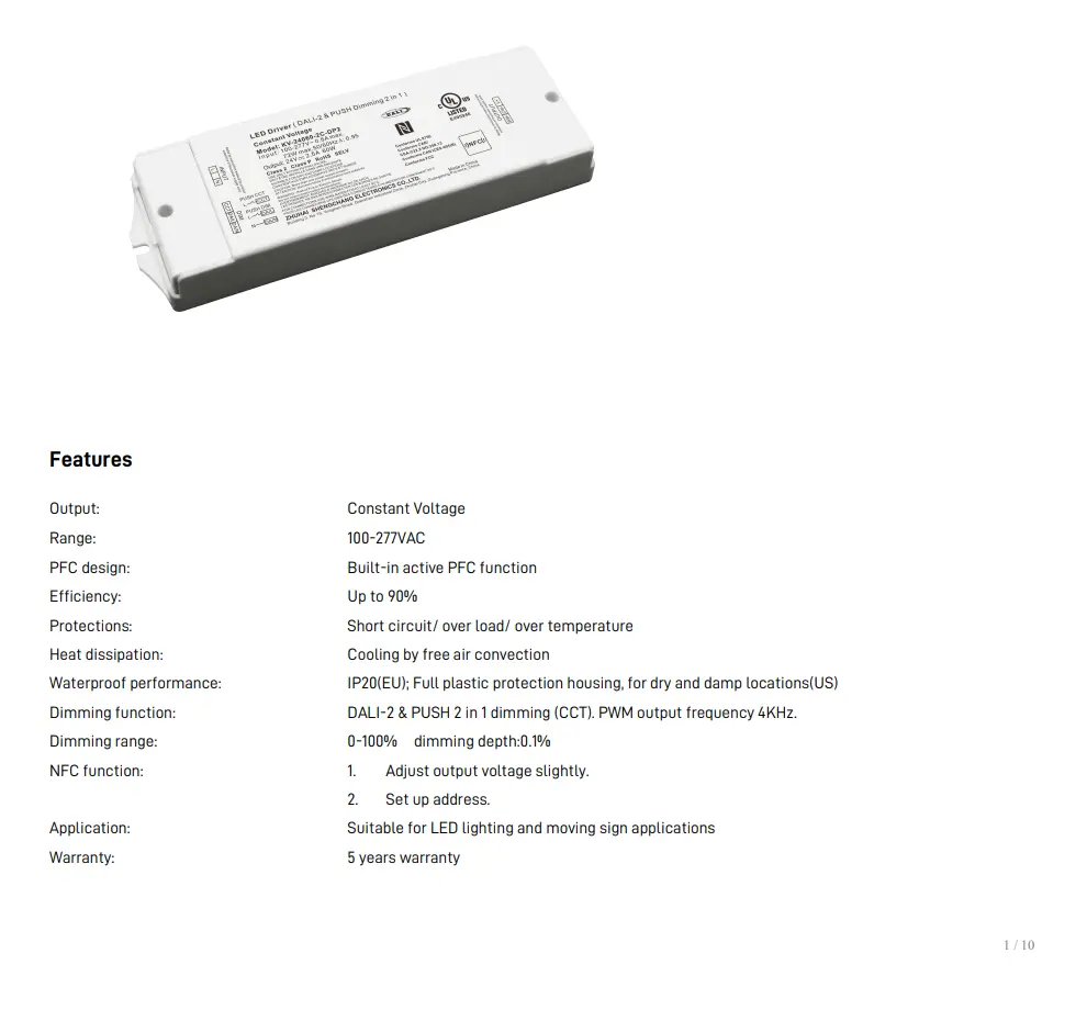 Pemandu menggunakan penyejukan perolakan udara semula jadi dan perumah plastik tertutup sepenuhnya sesuai untuk persekitaran dalaman yang kering atau lembap.