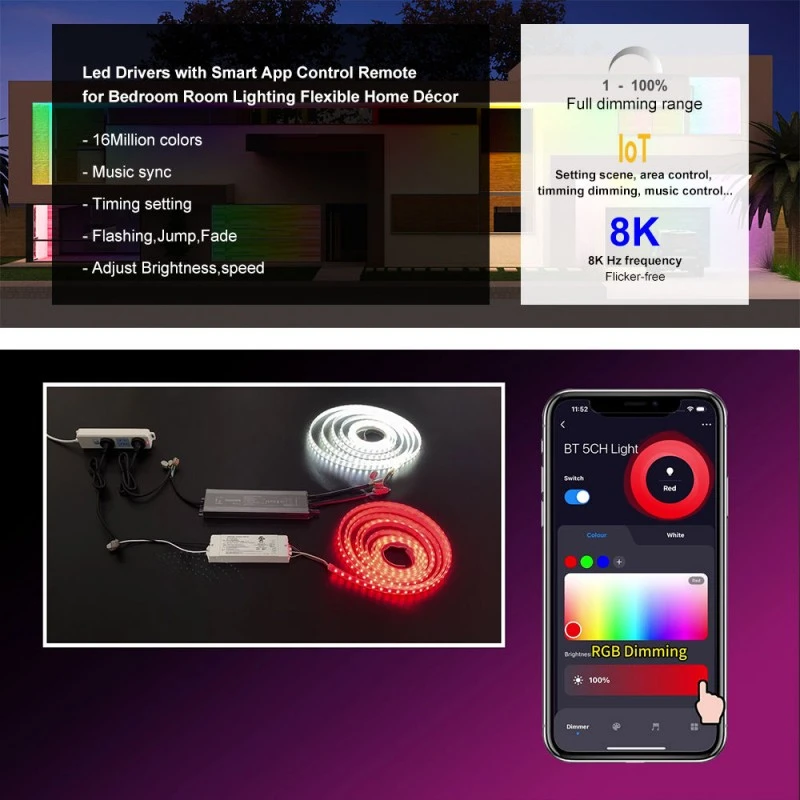 Peredupan Pintar di Hujung Jari Anda Memaparkan modul wayarles ZigBee bersepadu dengan teknologi TUYA, pemandu ini menawarkan kawalan pintar yang lancar. Laraskan kecerahan melalui aplikasi mudah alih atau arahan suara melalui Google Home dan Amazon Echo. Output PWM 8K Hz frekuensi tinggi memastikan pemalapan bebas kelipan sepenuhnya, manakala julat pemalapan 1-100% dengan kedalaman 1% membolehkan peralihan yang lancar dan penciptaan suasana yang sempurna.