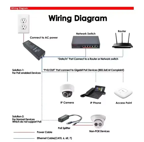 Output Kuasa Tinggi: Menyokong sehingga output 30W, menjana kuasa dan menyambungkan peranti rangkaian dengan cekap seperti kamera IP, AP tanpa wayar dan telefon VoIP.