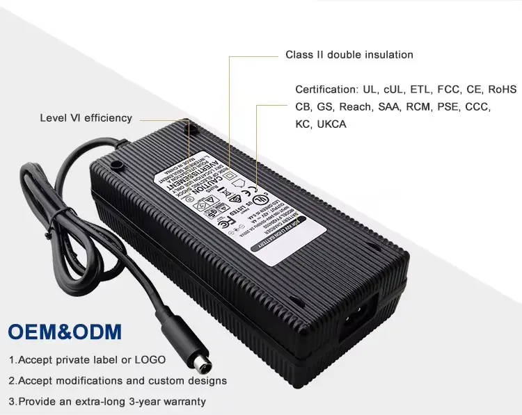 Diperakui kepada piawaian UL, ETL, CUL, GS, CE, BS, SAA ,KC, PSE, CB, FCC, EMC, RoHS, REACH, pengecas ini memberikan kuasa yang cekap, pantas dan selamat untuk menuntut aplikasi mobiliti elektrik.