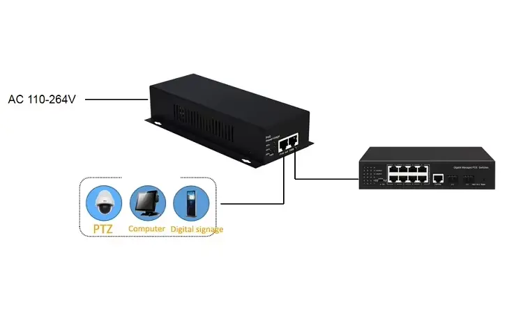 Keperluan Pengkabelan: Untuk penghantaran penuh 90W pada jarak yang lebih jauh (sehingga 100m), sangat disyorkan untuk menggunakan kabel Ethernet Cat6a (atau lebih tinggi) untuk meminimumkan kehilangan kuasa dan penjanaan haba.