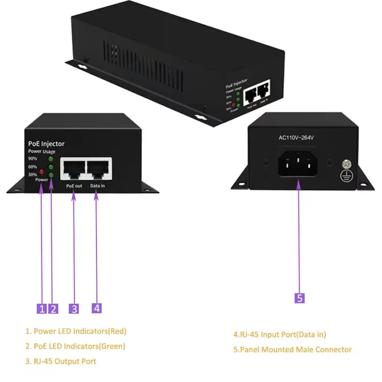 Sebagai pengeluar bekalan kuasa profesional di China, Starwell telah memperkenalkan Sarung Logam 90W IEEE802.3bt Gigabit PoE Injector yang mematuhi sepenuhnya standard IEEE 802.3bt. Ia menyokong output 52V, memberikan kuasa maksimum 90W setiap port, dan serasi ke belakang dengan standard 802.3af/at.