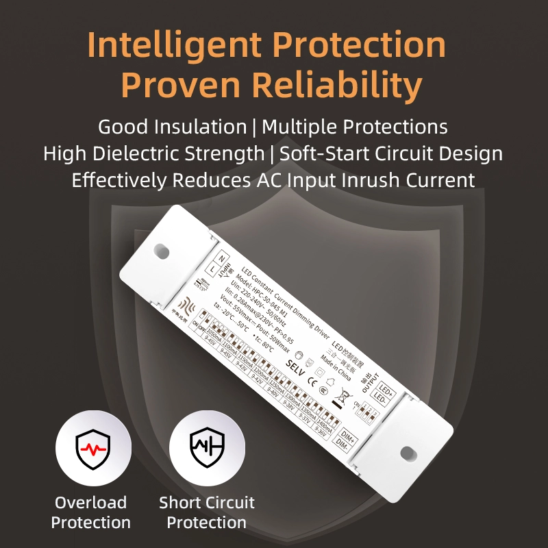 Mod Dwi Peredupan: Pemacu LED pemalapan arus malar menyokong input isyarat dwi pemalapan 0-10V/1-10V. Julat peredupan ialah 0-100%, dengan lineariti peredupan ≥95%. Ia boleh mencapai peralihan yang lancar dan lancar daripada malap kepada kecerahan penuh tanpa sebarang keterkejutan atau ketinggalan. Ia serasi dengan pelbagai sistem peredupan pintar dan boleh memenuhi keperluan pencahayaan bagi senario yang berbeza.