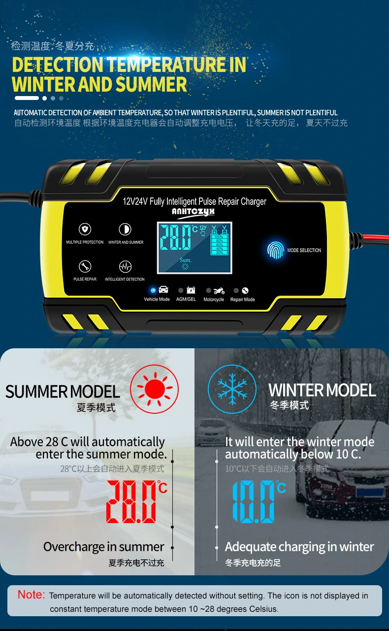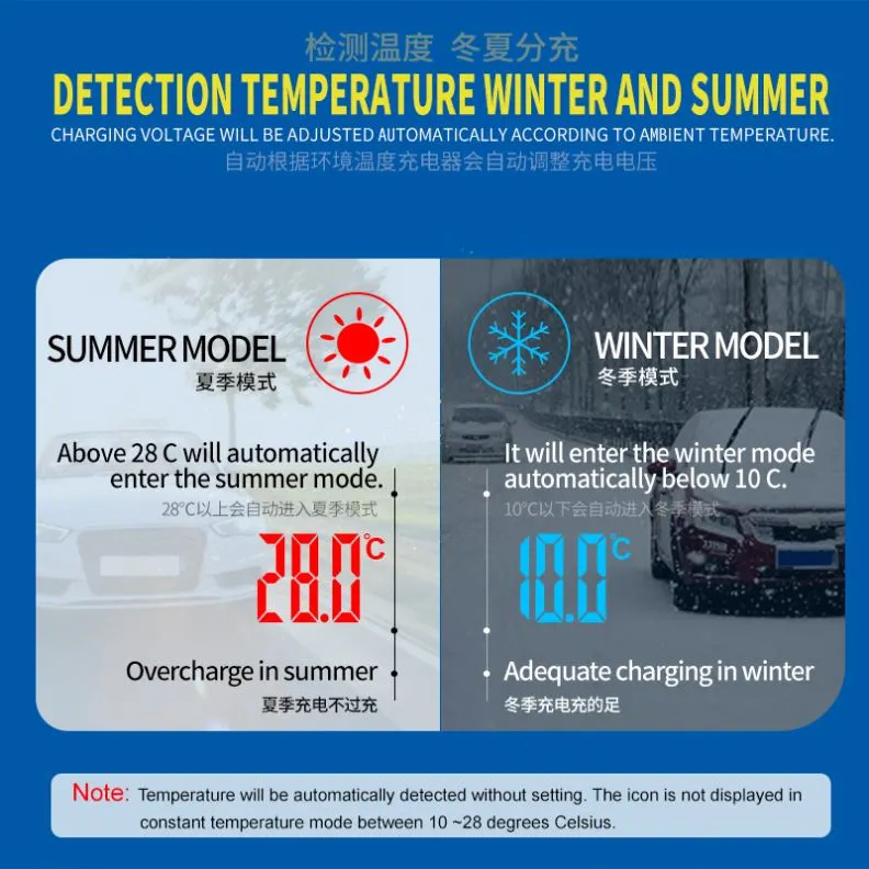 · Mod Penyelenggaraan Auto: Berfungsi sebagai pengecas titisan dan penyelenggara bateri jangka panjang, sesuai untuk kenderaan bermusim atau yang jarang digunakan.