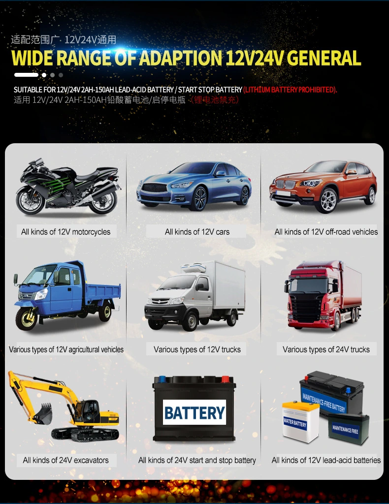 · Keserasian Bateri Luas: Berfungsi dengan bateri AGM, EFB, GEL dan asid plumbum (mula-henti) standard, memastikan aplikasi fleksibel merentas sistem moden dan tradisional.