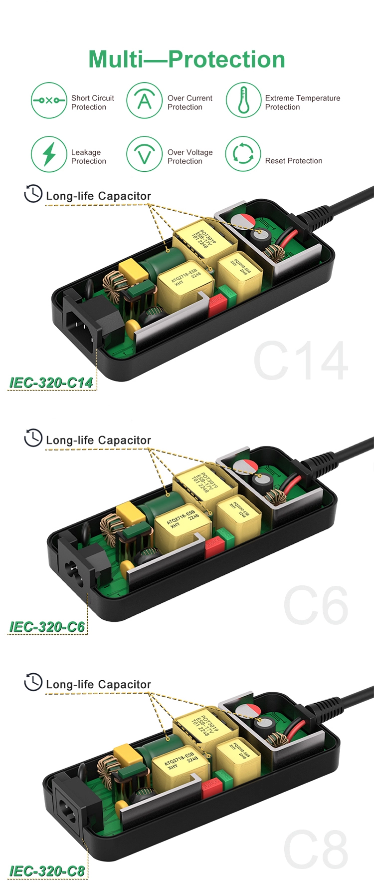 * Lebih banyak unit untuk siri 200W: 5V/8V/9V/12V/13.5V/15V/18V/19V/24V/25V/30V/36V/29V/30V/42V/48V tersedia * Keselamatan: OCP/OVP/OTP, SCP, pemotongan beban lampau automatik, pemotongan voltan lebih, pemotongan terma automatik. * Keserasian luas: Lampu Jalur LED, Pencetak 3D, transceiver radio ham, kamera CCTV, amp subwufer kereta, penguat audio, penghala wayarles, Kucing ADSL, Pelembap, HUB, Papan Kekunci, Pembesar Suara BT, Monitor, Kamera Web, DVR, NVR, bekalan kuasa audio/video