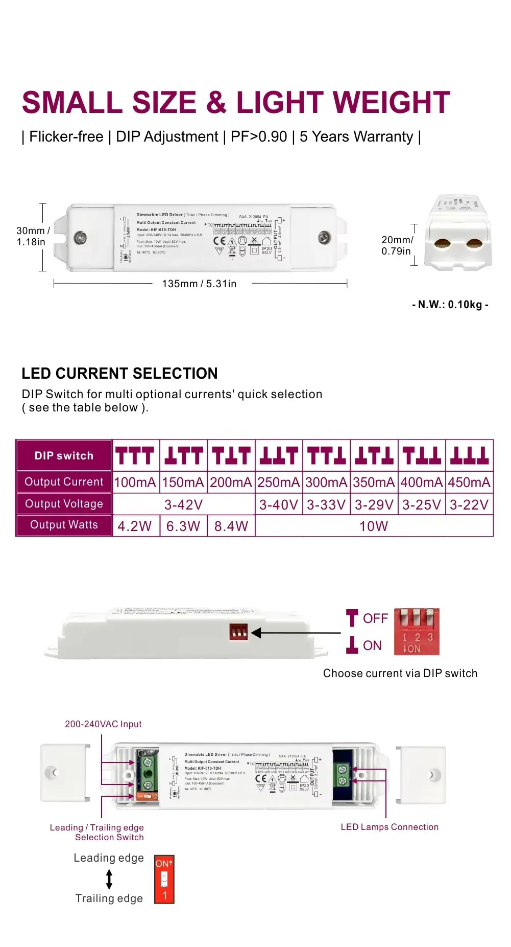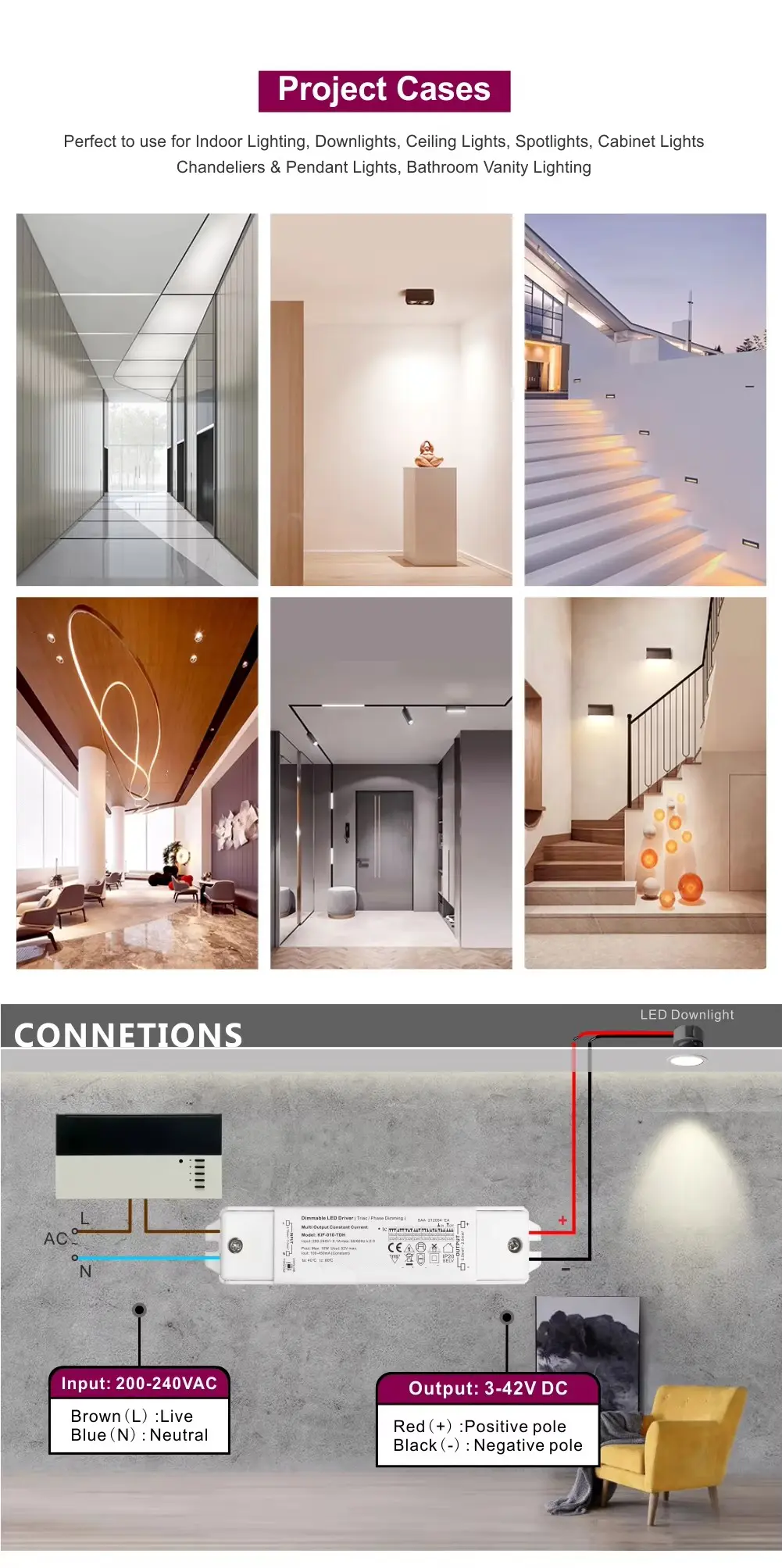 Dibina untuk kebolehpercayaan, ia menampilkan kecekapan tinggi, faktor kuasa tinggi dan perlindungan yang teguh terhadap arus lebih, suhu lebih dan litar pintas. Reka bentuknya yang padat membolehkan pemasangan mudah dalam pelbagai tetapan kediaman dan komersial.