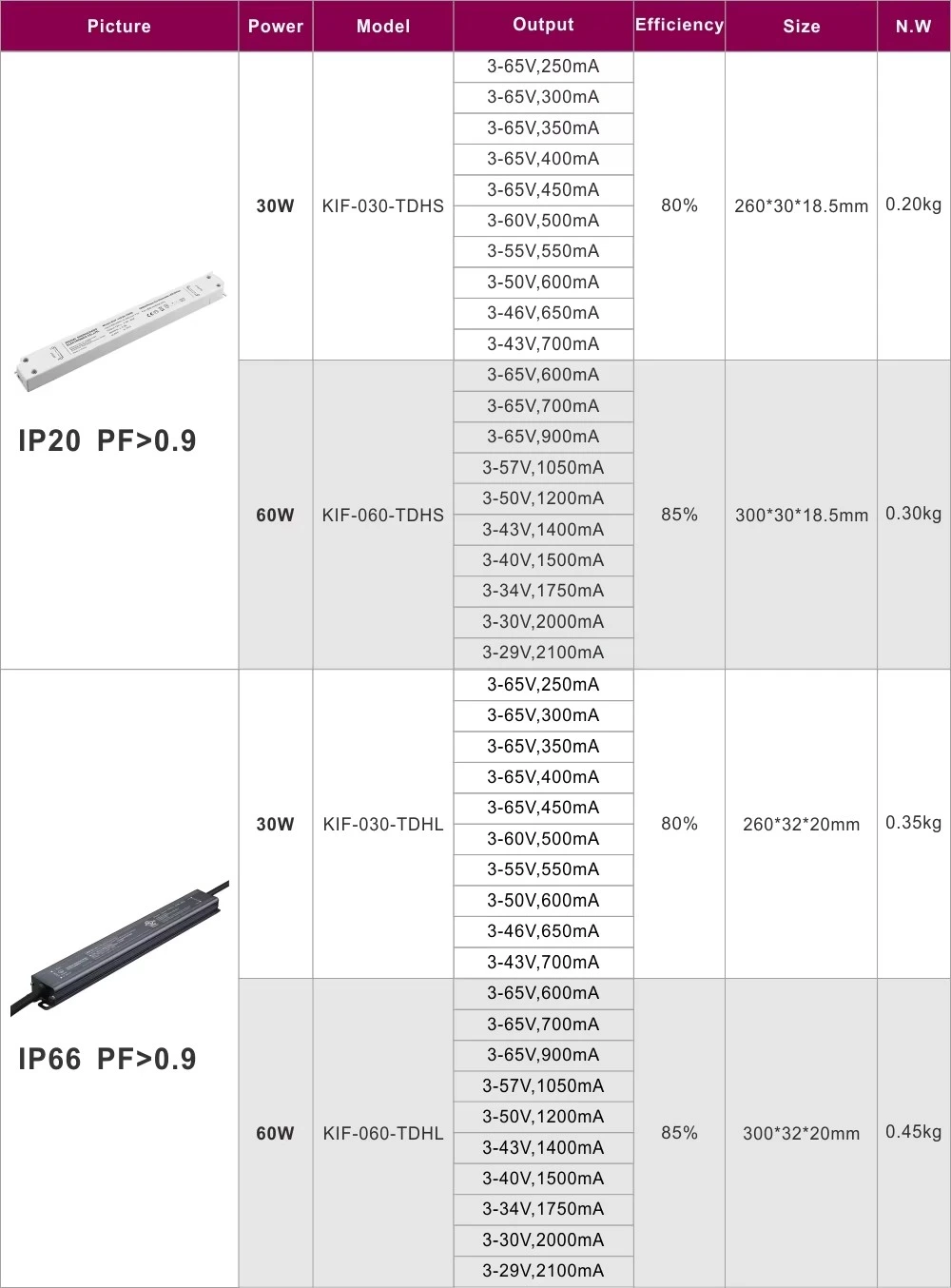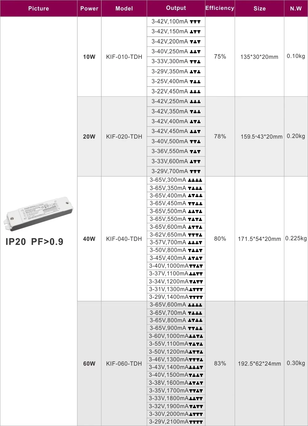Starwell Constant Current IP20 Triac boleh dimalapkan Led Pemacu Spesifikasi: