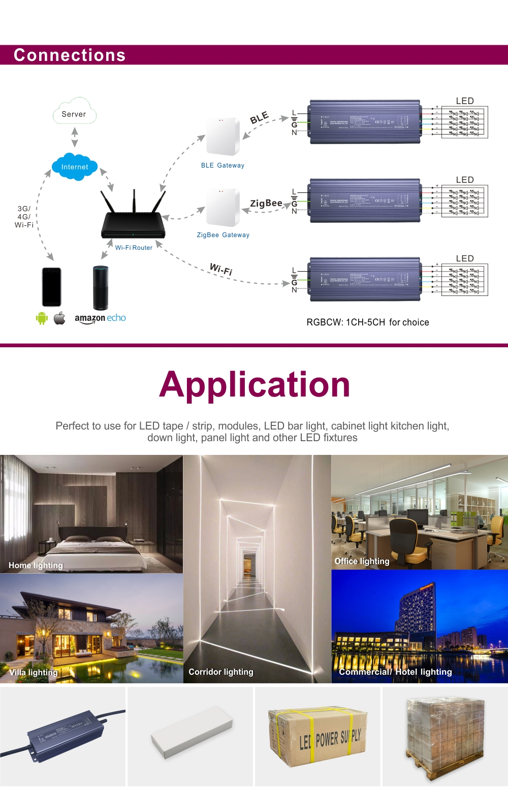 Diintegrasikan secara mendalam dengan ekosistem Tuya Smart, Pemacu LED 120W Voltan Malar Peredupan Wayarles Tuya Zigbee ini menggunakan protokol komunikasi Zigbee 3.0 terkini untuk komunikasi dua hala yang lancar.